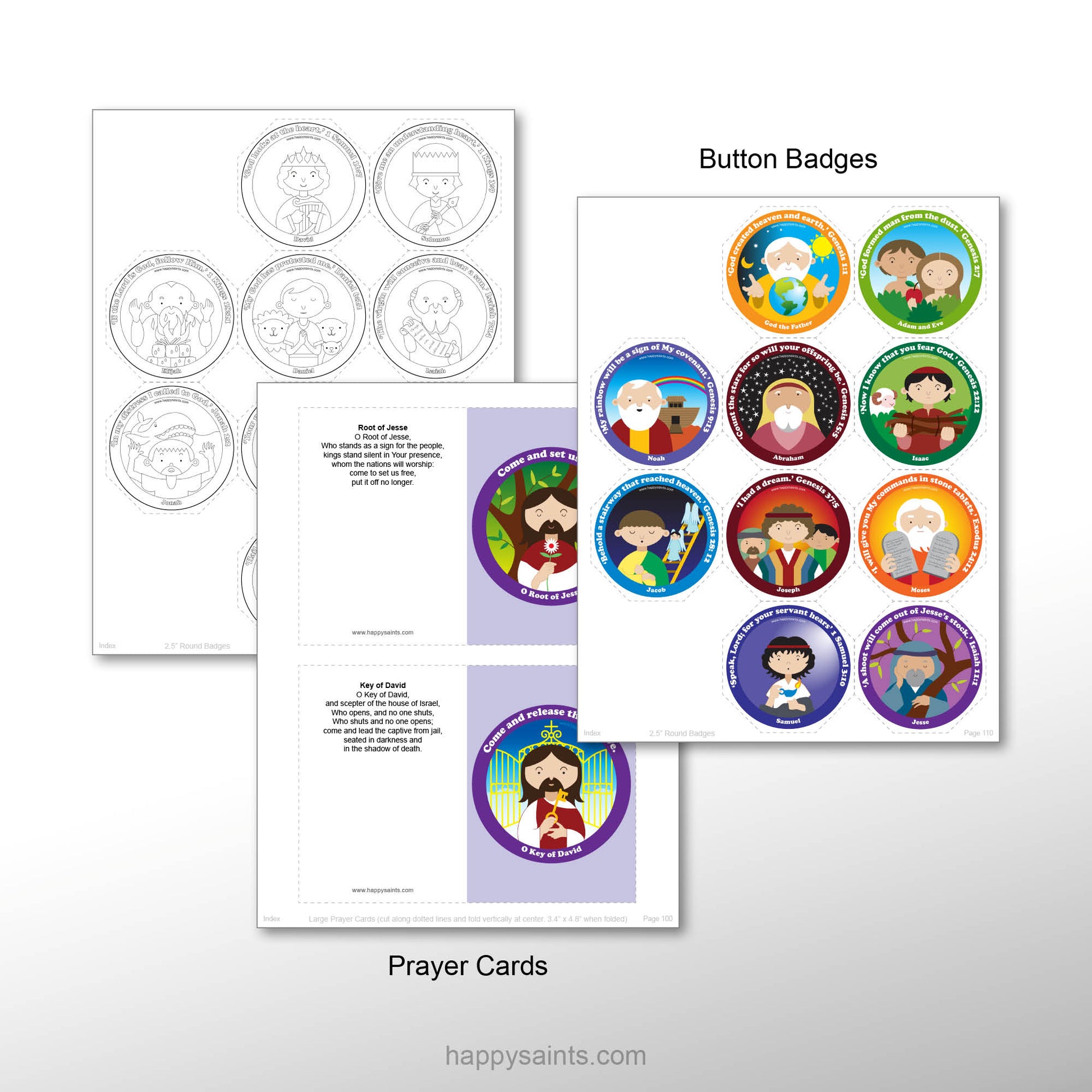 The Happy Saints Jesse Tree eBook also includes 7 “O Antiphons” icons of Jesus, traditionally displayed on Jesse Trees during the last week of Advent based on the daily prayers of the Church.